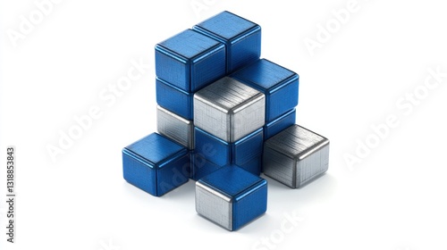 © Alfath, Obraz premium Abstract metallic blue and silver cubes structure.