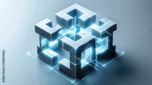 © Alfath, Obraz premium Abstract metallic cube with glowing connections.