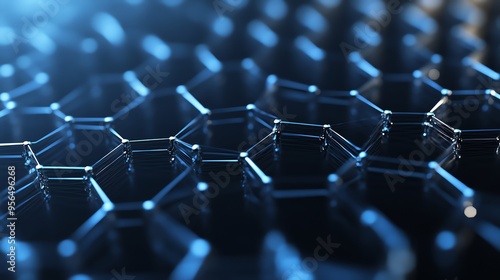 Obraz premium Abstract metallic hexagonal pattern in blue tones.