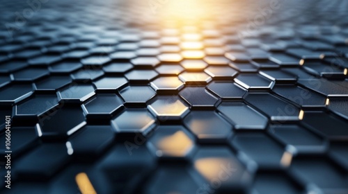 Obraz premium Abstract Metallic Hexagonal Pattern with Glowing Light