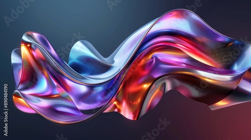 © Lubos Chlubny, Fototapeta premium Abstract metallic holographic colored shape
