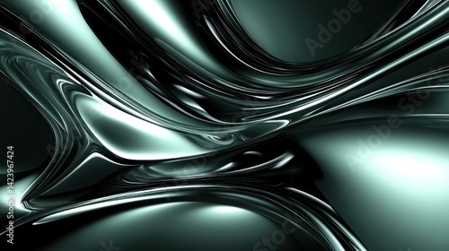 Obraz premium Abstract metallic shapes in flowing teal and black.