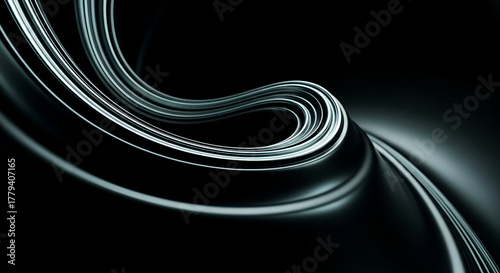 © ROTNA AKTER, Obraz premium Abstract Metallic Swirls on Dark Background curves
