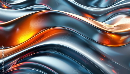 Fototapeta premium Abstract metallic waves with vibrant orange highlights creating a futuristic...