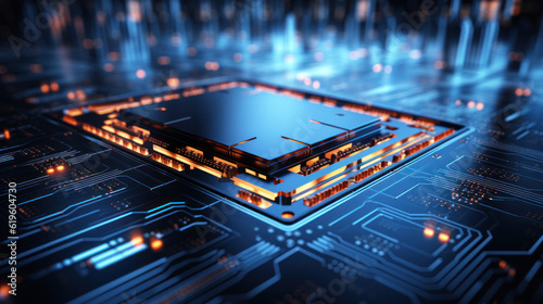 Fototapeta premium Abstract microchip technology background with room for AI or other text