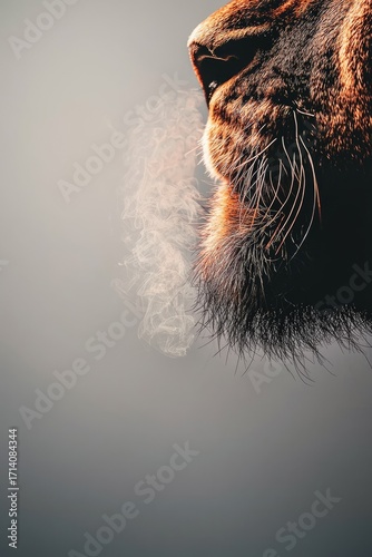 © LailaBee, Obraz premium Abstract Minimal Lion Head Design with Smoke Effects