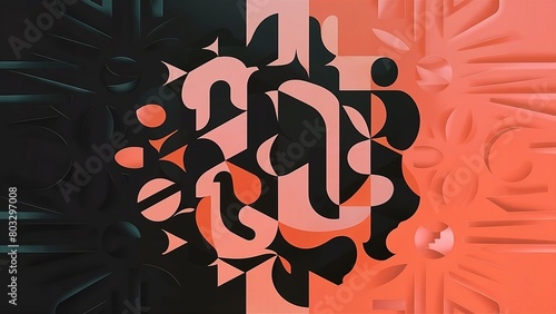 © Facundo, Fototapeta premium Abstract minimalist background, black and orange colors, inspired by the Cubist artistic style.