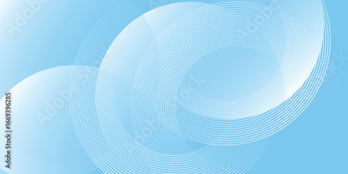 Naklejka premium Abstract minimalist banner background, pastel colorful, blue and white gradations. Circle effect style geometric simple art vector eps10