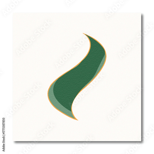 © Ridboy, Naklejka premium Abstract Minimalist Green Wavy Shape Logo or Background Design with Orange Outline