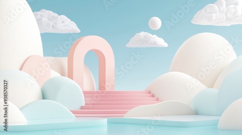 Fototapeta premium Abstract Minimalist Pastel Pink and Blue D Scene with Arch and Steps