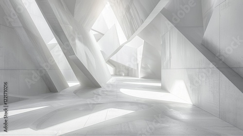 © Elzerl, Obraz premium Abstract minimalist space. Intersecting white geometric shapes create clean lines and smooth textures. Subtle shadows accentuate angles. Light plays across the scene.