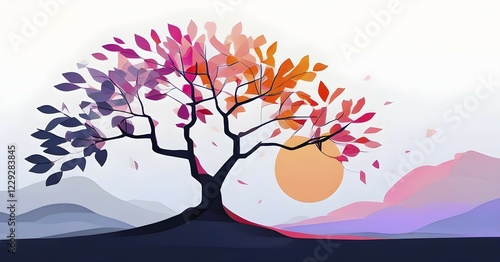 Fototapeta premium Abstract minimalist spring scene with a single, sharp silhouette of a...