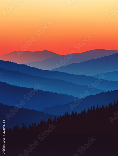 © bilge, Fototapeta premium Abstract Minimalist Sunset Art Illustration