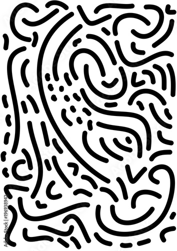 © Shawn Hempel, Obraz premium Abstract modern black and white doodle memphis style pattern