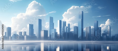 Obraz premium Abstract modern city skyline with a cloudy blue sky in the backdrop rendered...