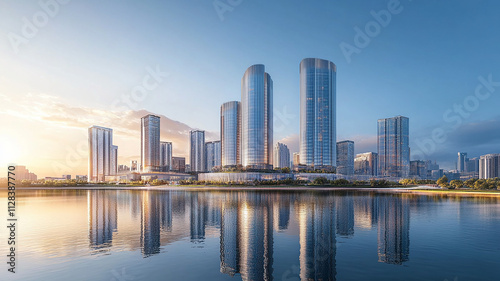 Naklejka premium abstract modern construction of cityscape with buildings, modern interior architectural various building, abstract modern showcasing a vibrant cityscape with modern architecture.