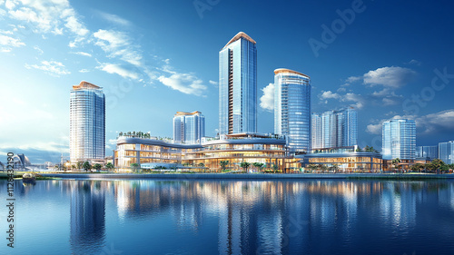 © FLOATING HEART, Fototapeta premium abstract modern construction of cityscape with buildings, modern interior architectural various building, abstract modern showcasing a vibrant cityscape with modern architecture,