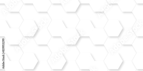 © MOHART PARK, Naklejka premium Abstract modern 3d background with hexagonal with hexagon polygonal pattern background vector. seamless bright white abstract honeycomb square vintage creative concept background.