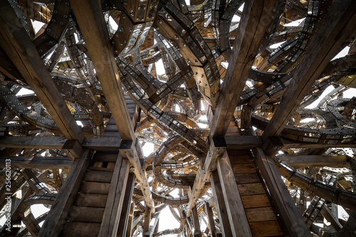 Obraz premium Abstract modern future architecture. Spirals of wood, connected by metal. Geometry of architecture.