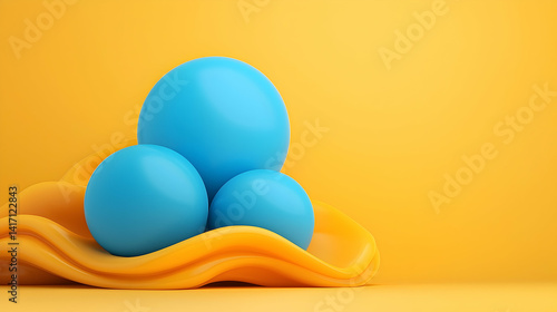Fototapeta premium Abstract Modern Futuristic Background with Blue Spheres and Yellow Wave