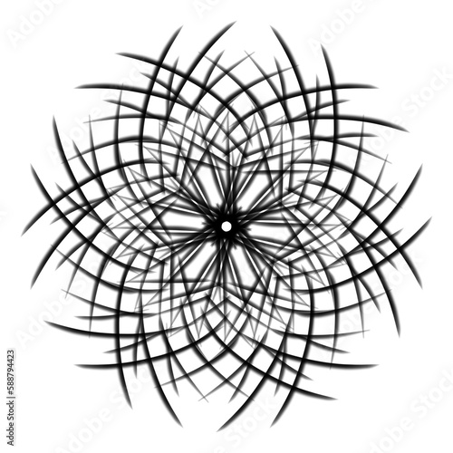 Obraz premium Abstract modern geometric floral shape circular symmetric pattern design in black color on transparent background