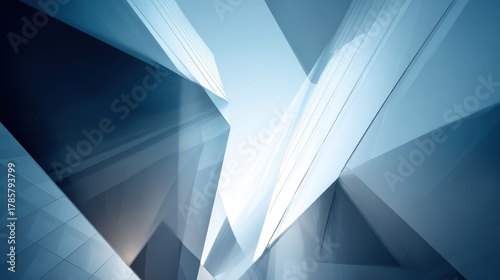 Naklejka premium Abstract Modern Glass Architecture with Dynamic Geometric Blue Reflections