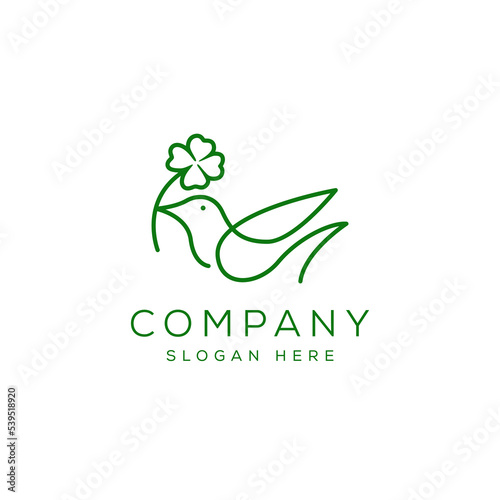 Fototapeta premium Abstract Modern Monoline Bird Logo with Clover Leaf