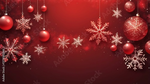 © AnzumanAziz, Fototapeta premium Abstract Modern Red Christmas Background | Festive Red Holiday Lights & Snowflakes