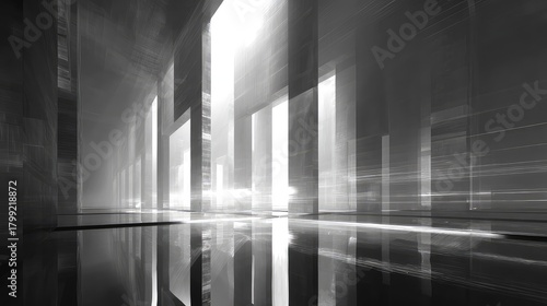 © PikePicture, Fototapeta premium Abstract modern vanishing business architecture with digital light