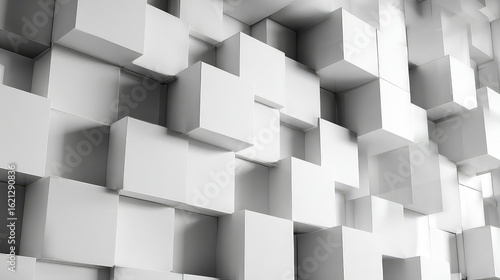 Obraz premium Abstract Modular White Cubes in Staggered Composition