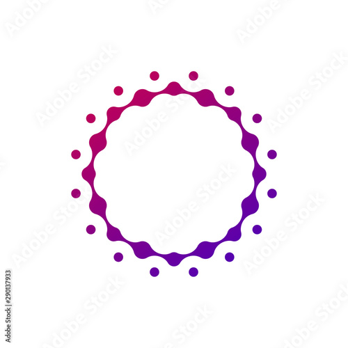 Fototapeta premium Abstract molecular circle logotype. Connected dots chemistry logo. Virus Sun or Flower icon. Stock vector illustration isolated on white background.