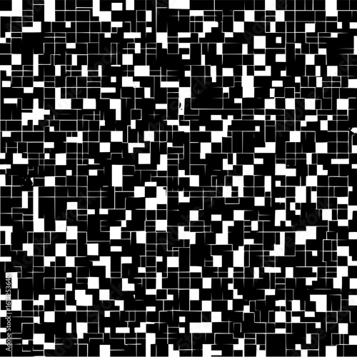© Sehrish, Fototapeta premium Abstract monochrome pattern of black and white squares with a chaotic and pixelated arrangement style