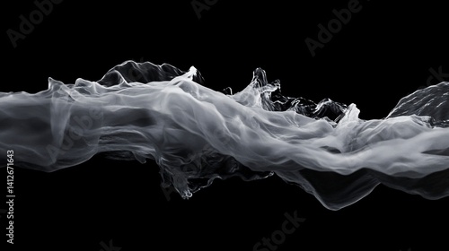 © arief, Fototapeta premium Abstract Monochrome Wave Floating on a Black Canvas Backdrop Artwork