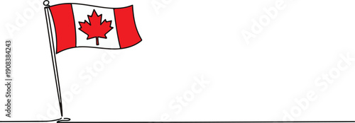 © Sabit, Fototapeta premium Abstract Monoline Illustration Canadian Maple Leaf and Flagpole