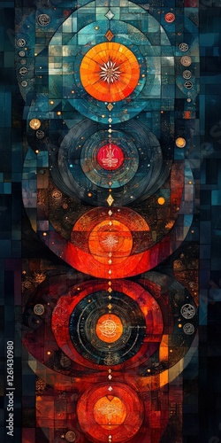 © Ali, Obraz premium Abstract mosaic artwork cosmic circles fiery hues