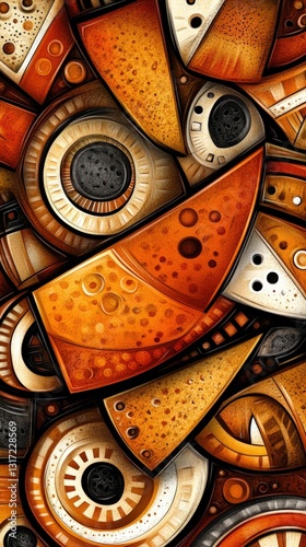 © Feri, Fototapeta premium Abstract mosaic pattern with geometric shapes and various textures in warm orange and brown tones. Artistic digitally rendered