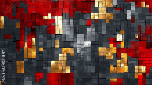 Fototapeta premium "Abstract Mosaic Pixel Background in Gray, Gold, White, Black, and Red –...