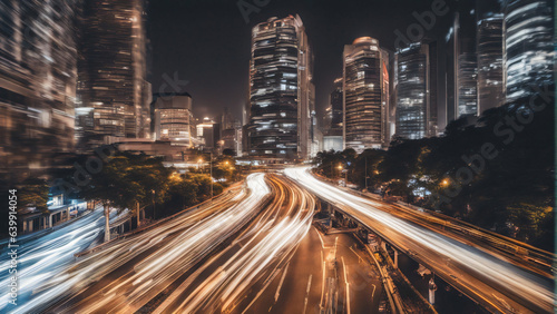 Fototapeta premium Abstract Motion Blur City, traffic in central district of city at night....