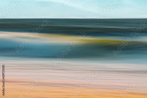 Obraz premium Abstract motion blur seascape. Bright sunny day on the beach, line art, copy...