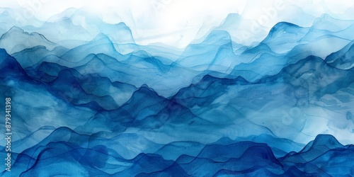 © Nice Seven, Obraz premium Abstract Mountain Range in Blue Hues