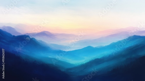 © MrHamster, Fototapeta premium Abstract Mountain Range with Pastel Sky at Sunset