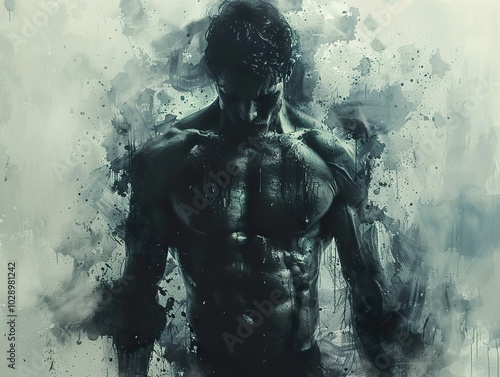 Fototapeta premium Abstract Muscular Man Portrait - Digital Watercolor Art