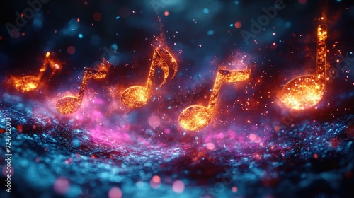 © Ummeya, Fototapeta premium Abstract Music Background with Musical Notes and Bokeh Effects Representing a Lively Audio Environment