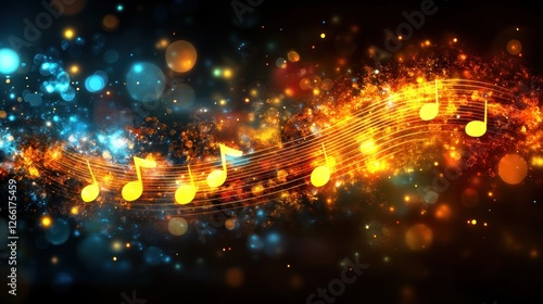 Obraz premium Abstract music notes flowing through fiery background