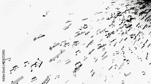 © Japanese_Brush, Naklejka premium Abstract Musical Notes Background With Flowing Music Symbols