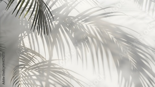Fototapeta premium Abstract natural palm tree leaves shadow on white wall background