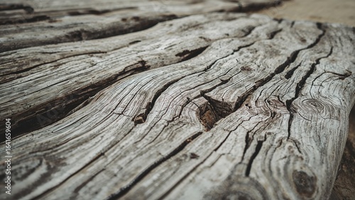 © vxnaghiyev, Obraz premium Abstract natural wood pattern on beach sand captured in a detailed close-up