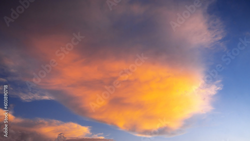 © Maizal, Obraz premium Abstract nature background. Sunset sunrise sky with yellow beautiful clouds.
