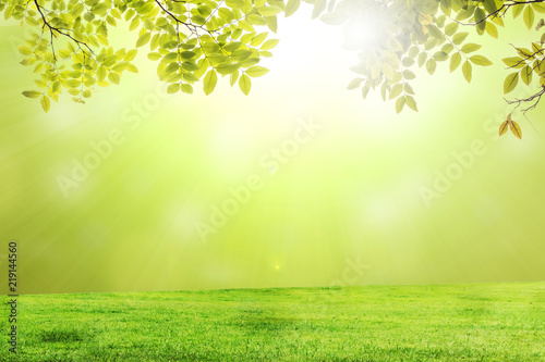 © oum, Obraz premium abstract nature green leaf on blurred bokeh background blurred with sunlight