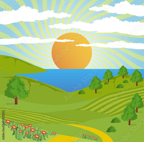 © Iryna Volina, Fototapeta premium Abstract nature landscape sun sky road